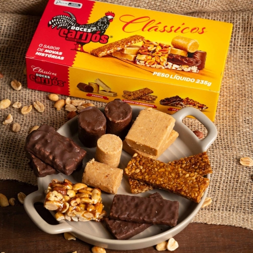São tantas delícias que não sabemos qual escolher, não é mesmo? O kit Carijós é perfeito para quem não consegue levar apenas uma opção para casa ou para presentear quem você mais ama! O kit conta com produtos como: torrão, paçoquinha e pé de moleque, e o melhor dos seus doces tradicionais e com cobertura de chocolate.