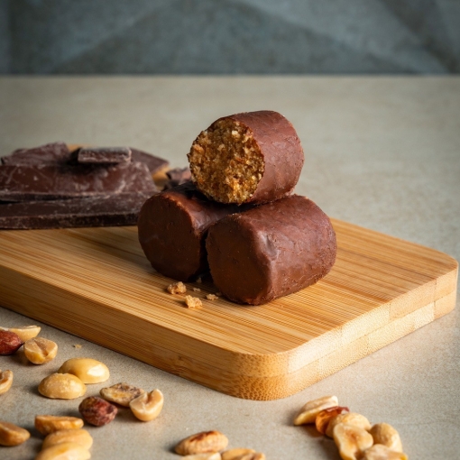 - Ingredientes: Amendoim, açúcar e chocolate meio amargo