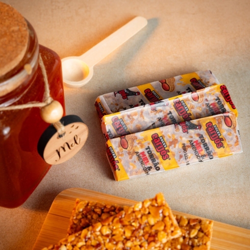 Nada melhor do que o nosso tradicional torrão com aquela combinação apaixonante entre Amendoins selecionados e o mais puro Mel de abelha, um sabor incomparável e inesquecível.