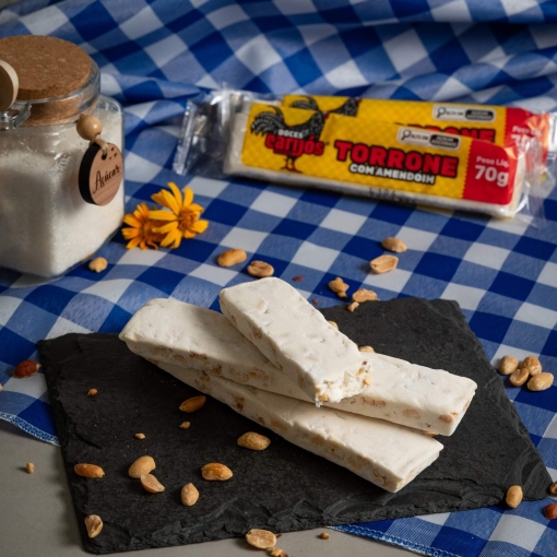 - Ingredientes: Açúcar, glicose de milho, amendoim torrado, ovo (clara de ovo) e sal.